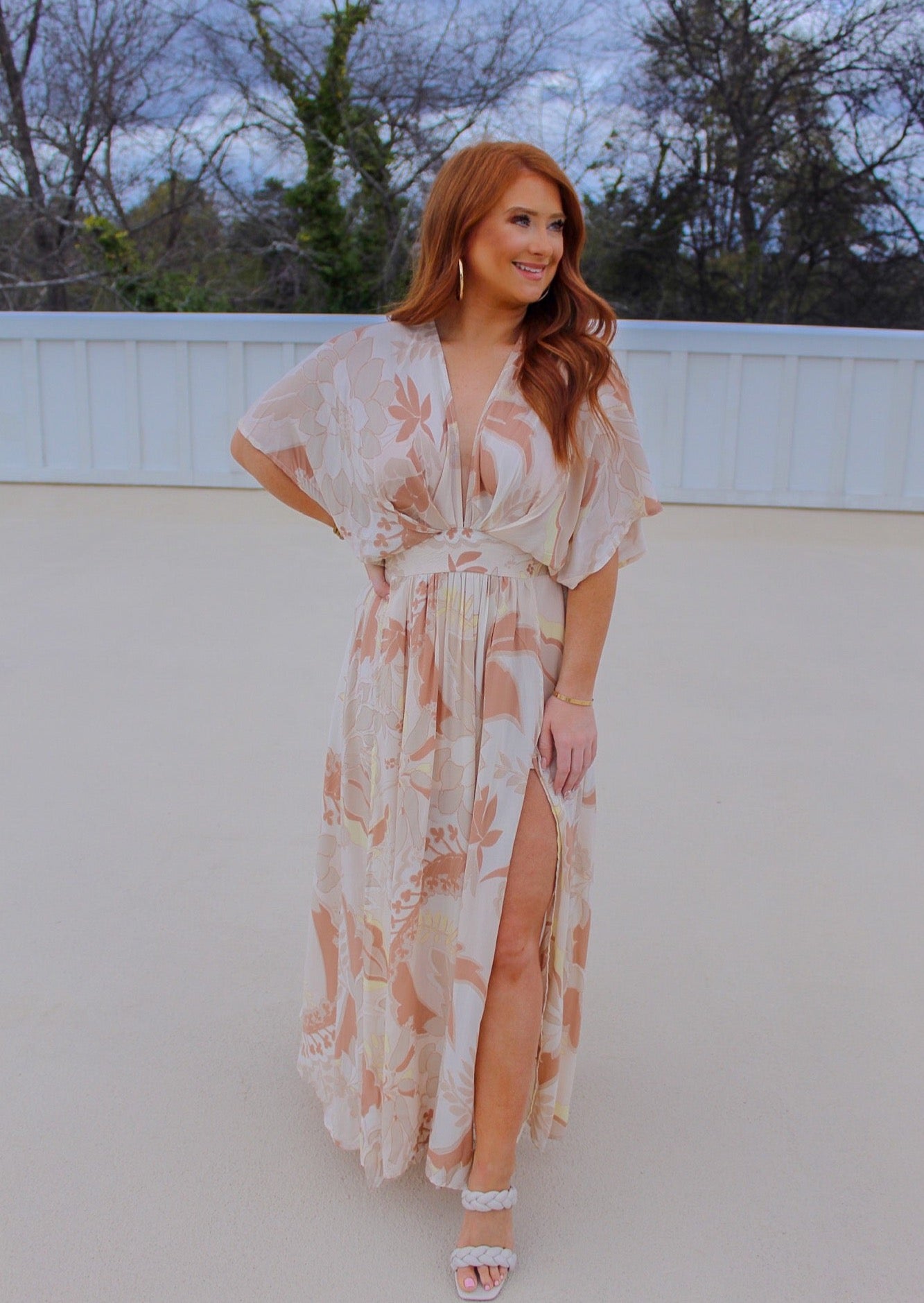 This floral maxi a standout piece to transition into the spring/summer! Add an felt hat and your gonna turn heads when you walk into the room! All the BOHO vibes!
