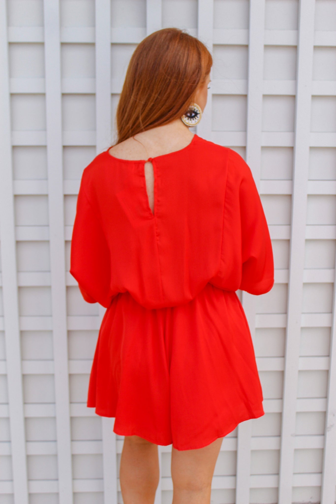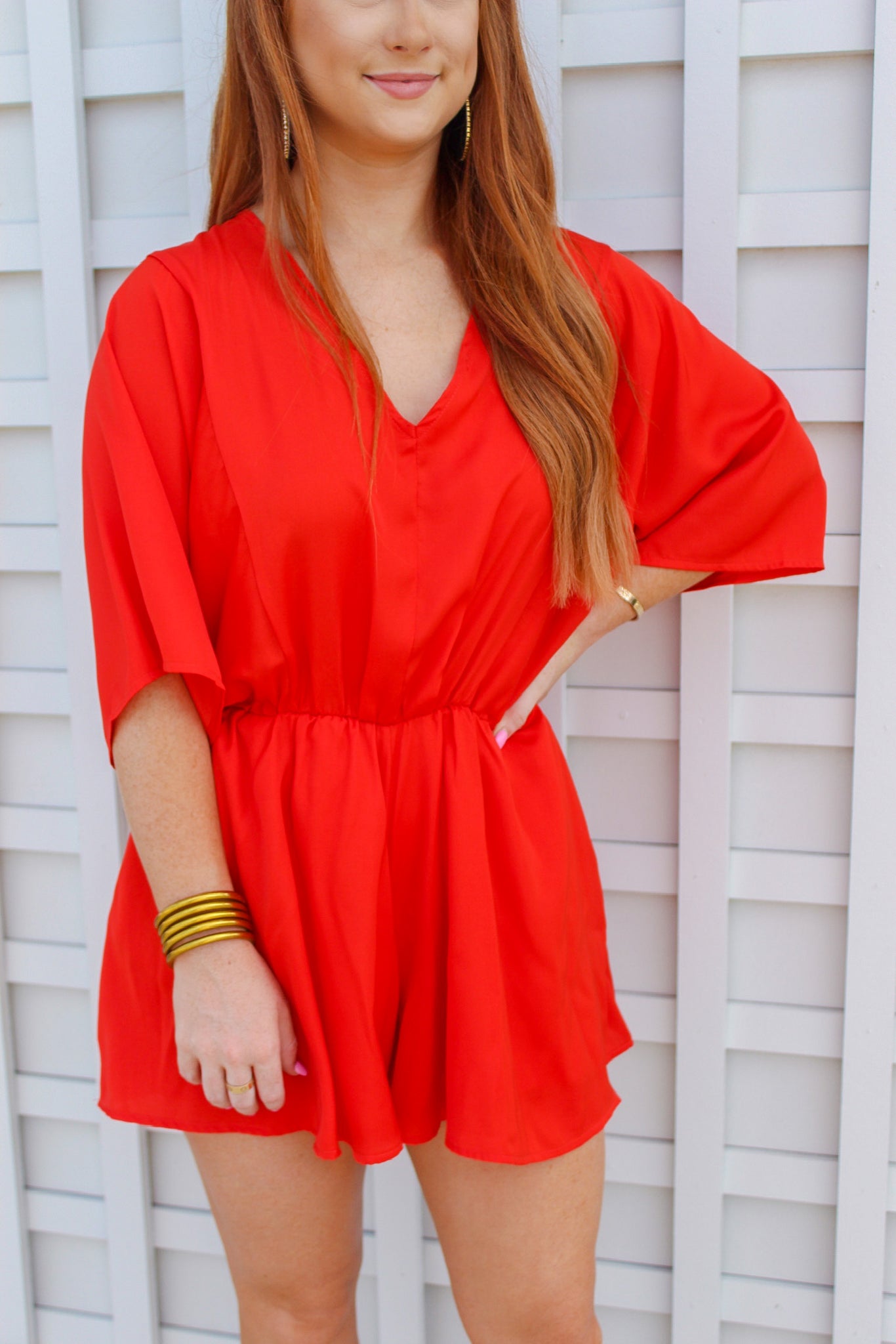 • Load image into Gallery viewer, Frankie Kimono Sleeve Romper- Red