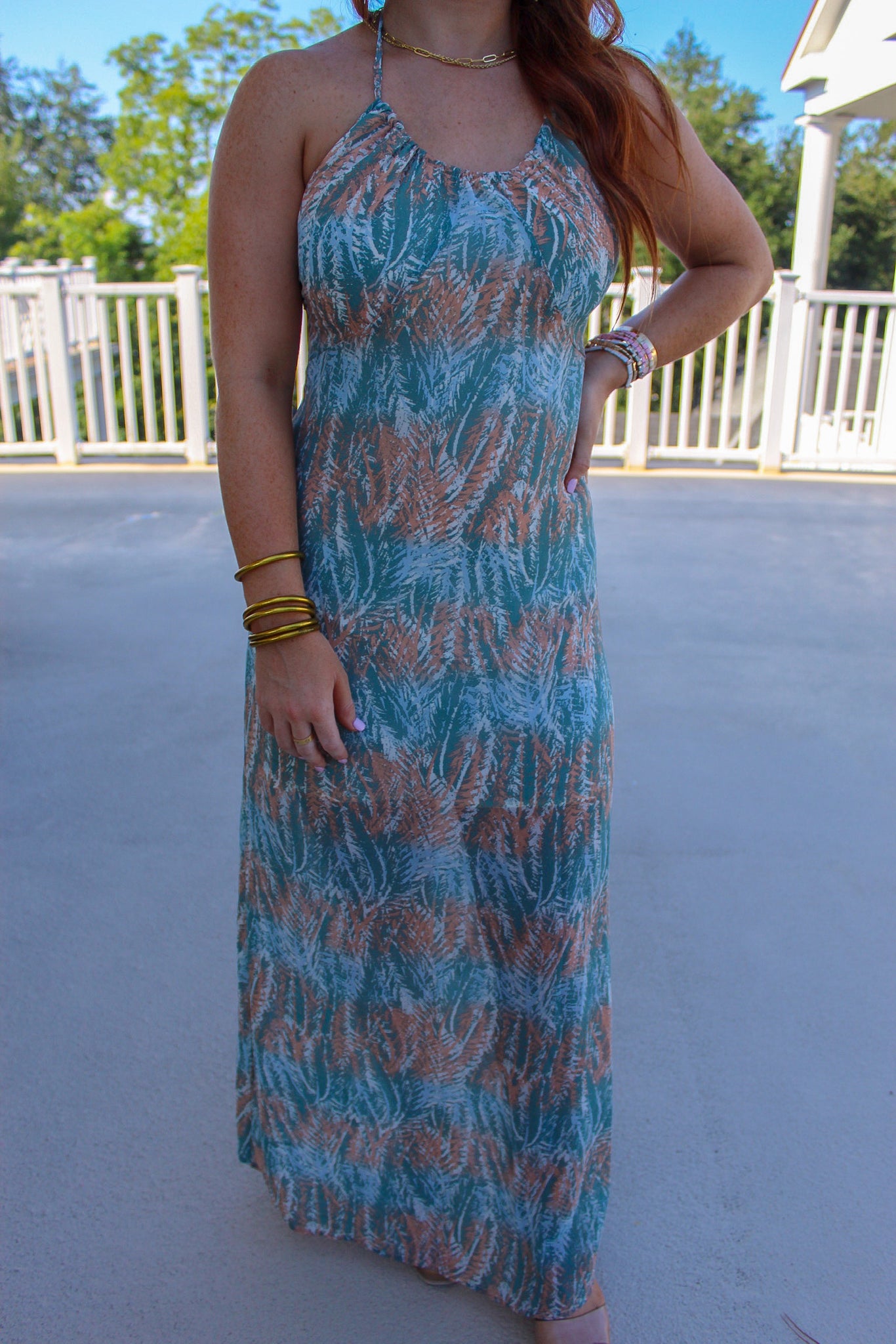 This Tropical Print Halter Neck Maxi will make you want to book a trip to the Bahamas! Rock with wedges or sandals!