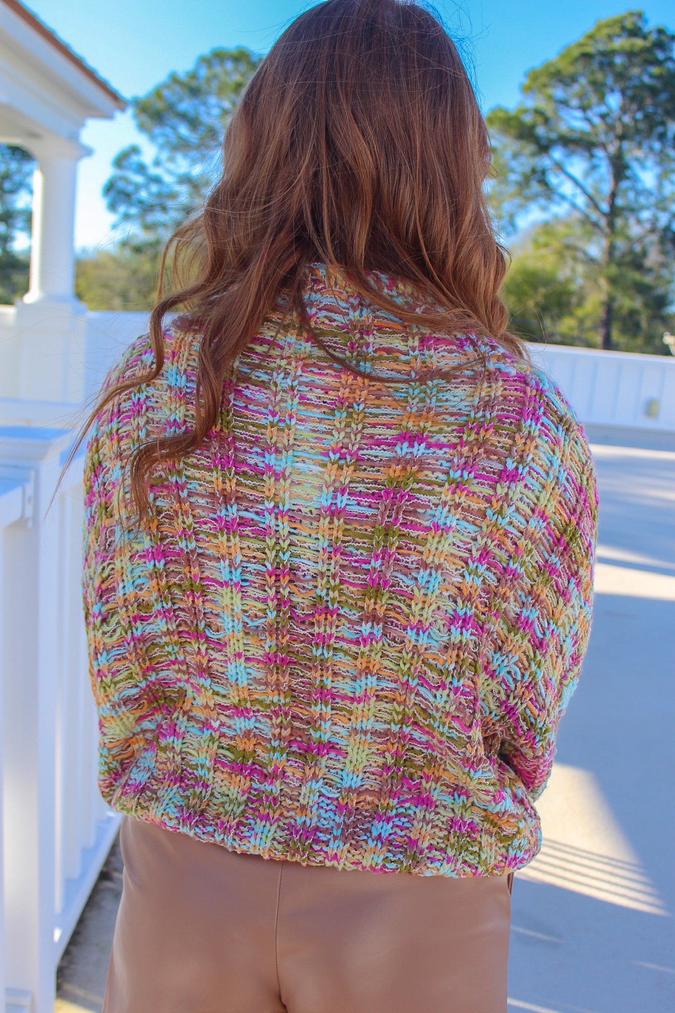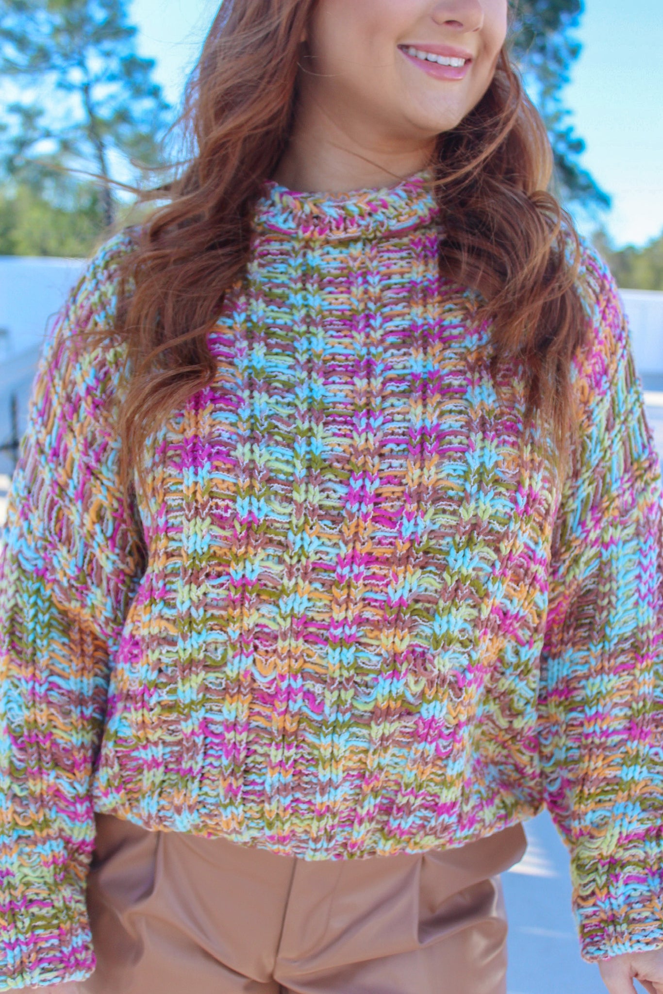 Just Fabulous Mock Neck Sweater- Fuchsia Multi