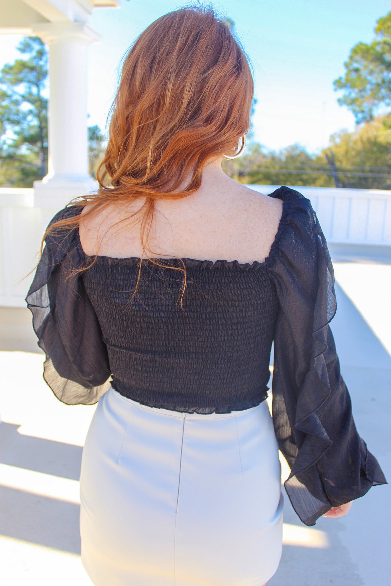 Kaitny Sweetheart Ruffle Sleeve Smocked Top-Black