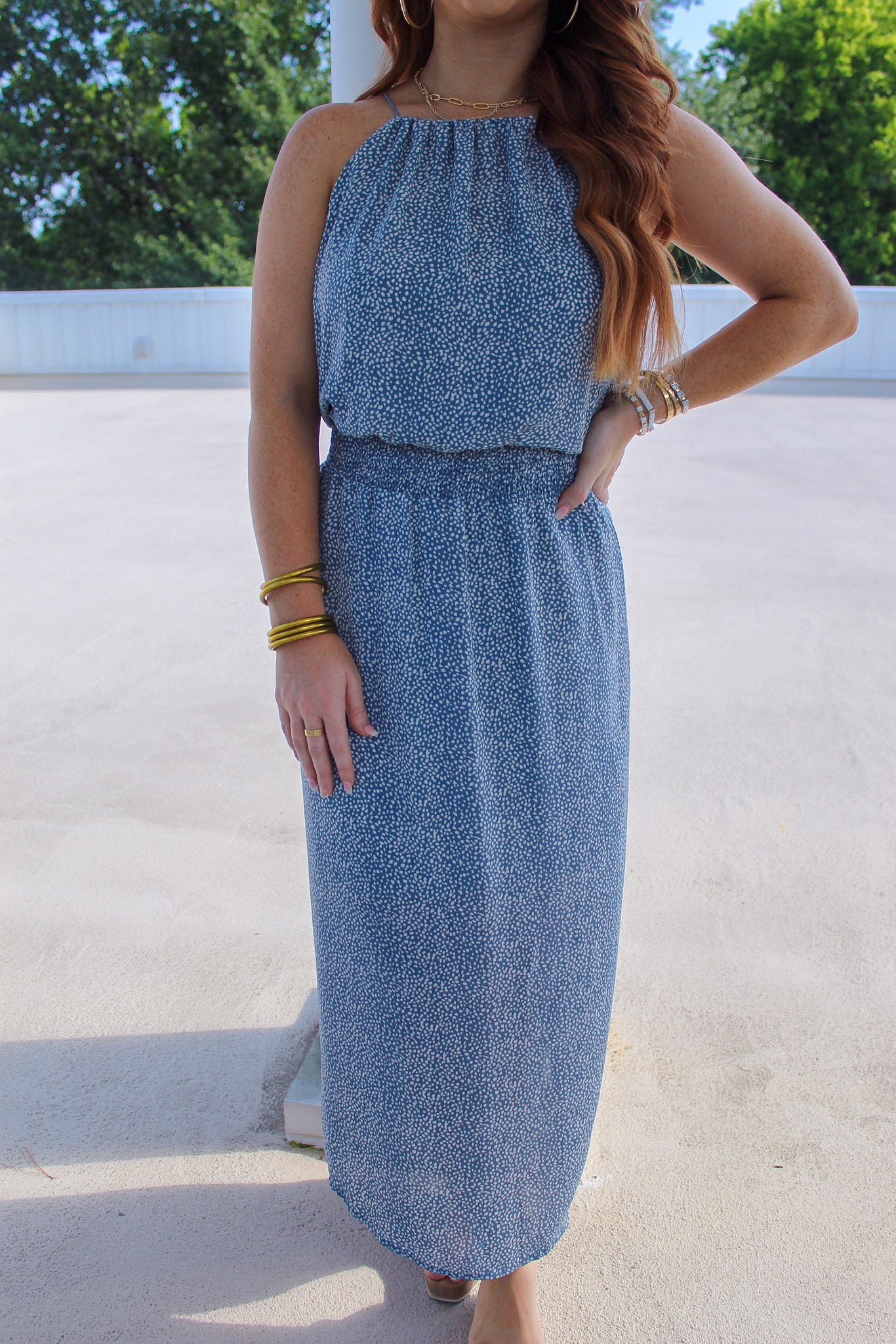This high neck dotted dress would be adorable for a beach dinner or a wedding paired with wedges! The cinching at the waist is so flattering!