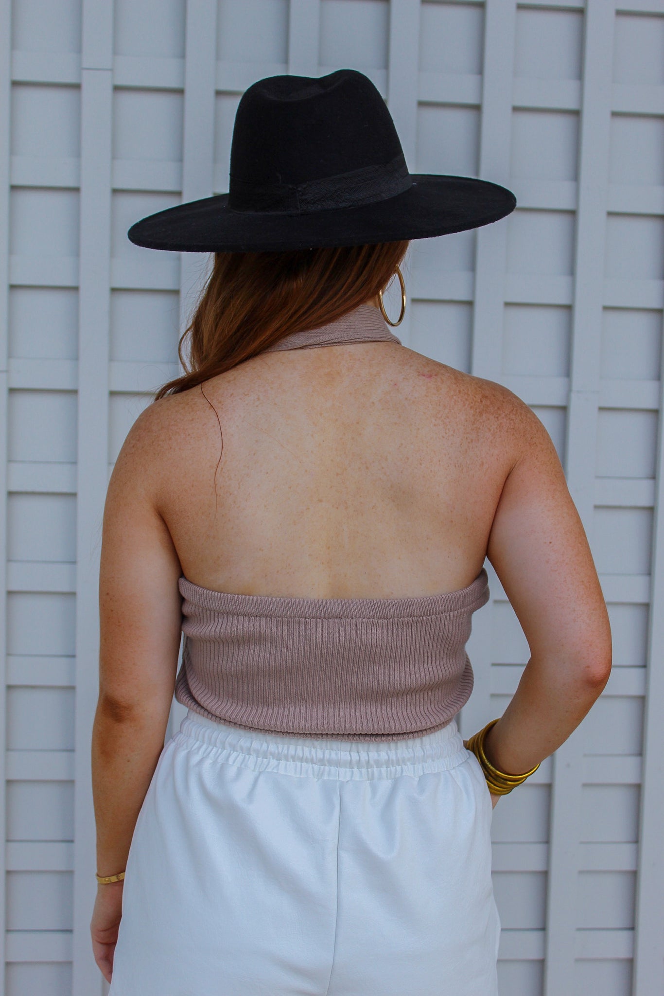 • Load image into Gallery viewer, Kirby Criss Cross Halter Top- Taupe
