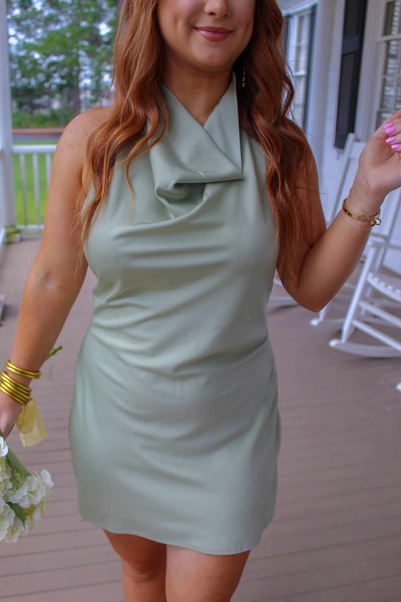 • Load image into Gallery viewer, Light Up The Night Halter Satin Dress- Light Green