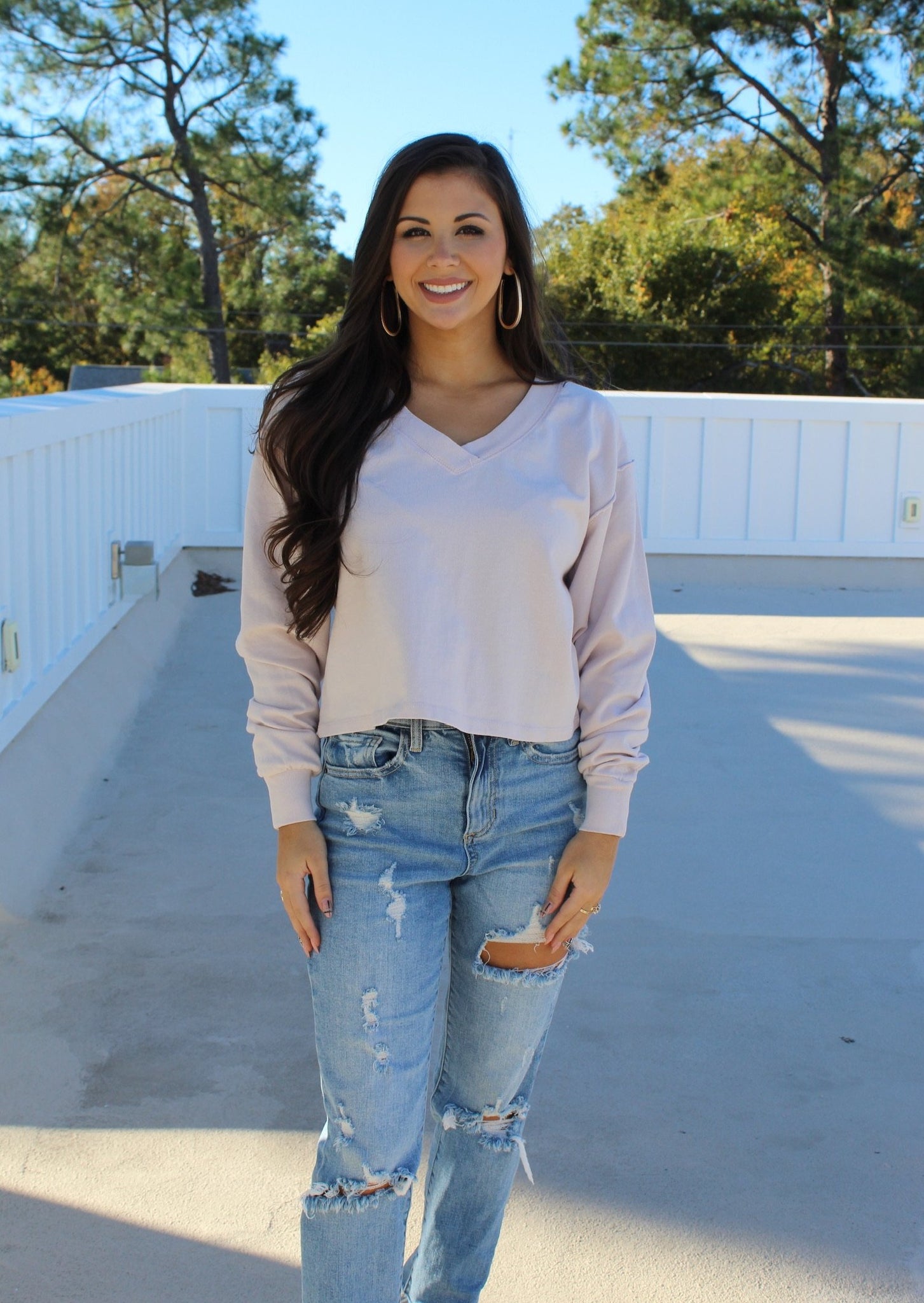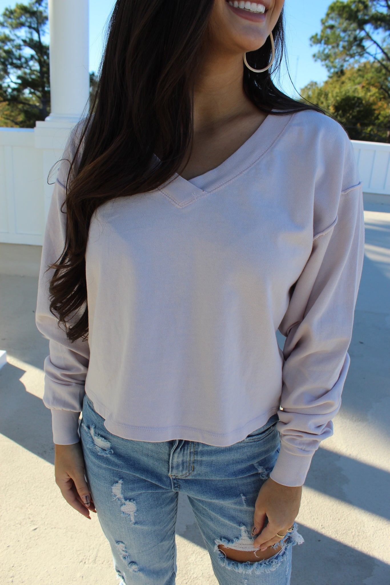 Logan V Neck Long Sleeve Crop- Lilac Fog