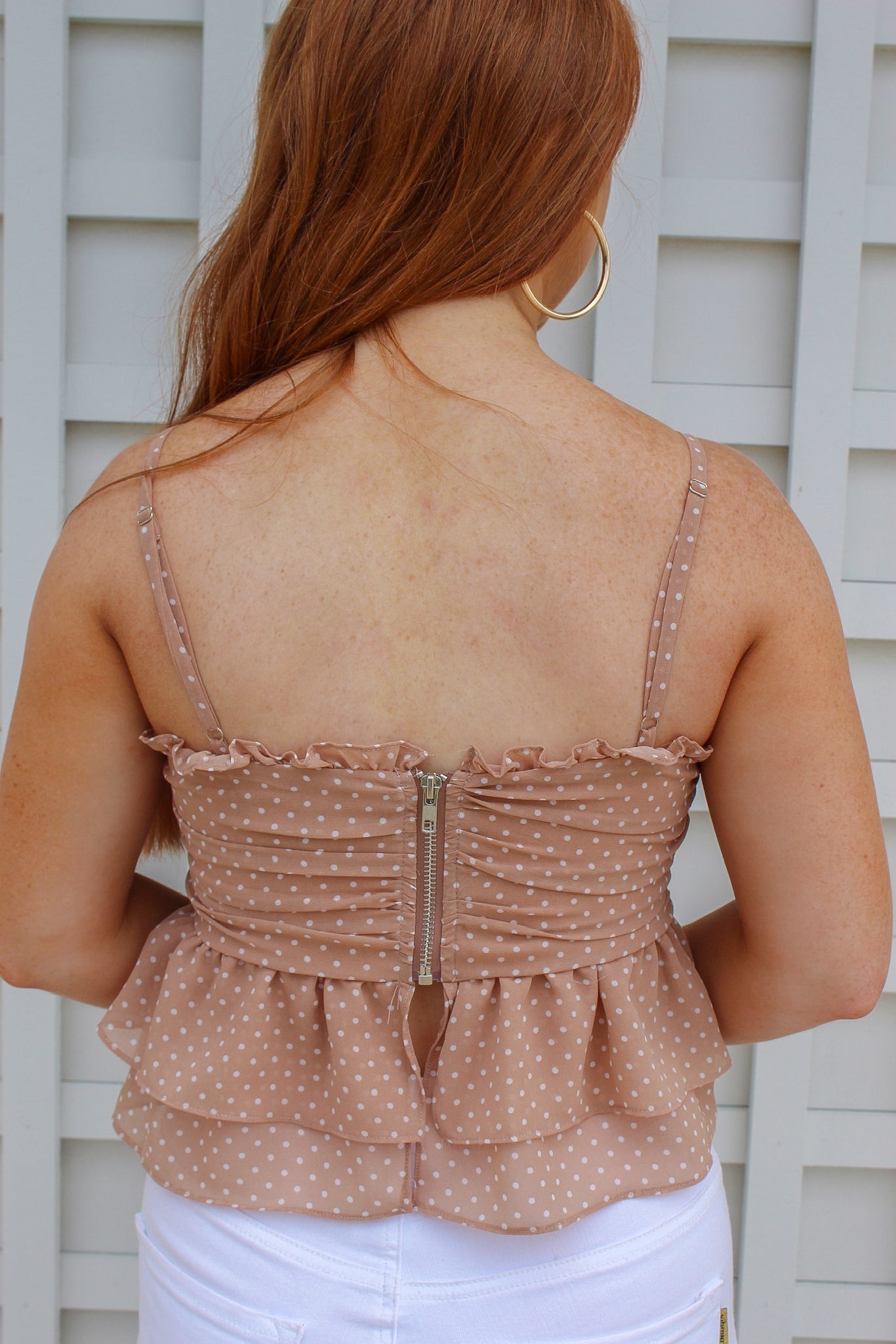 Madeline Ruched Polka Dot Crop Top- Taupe