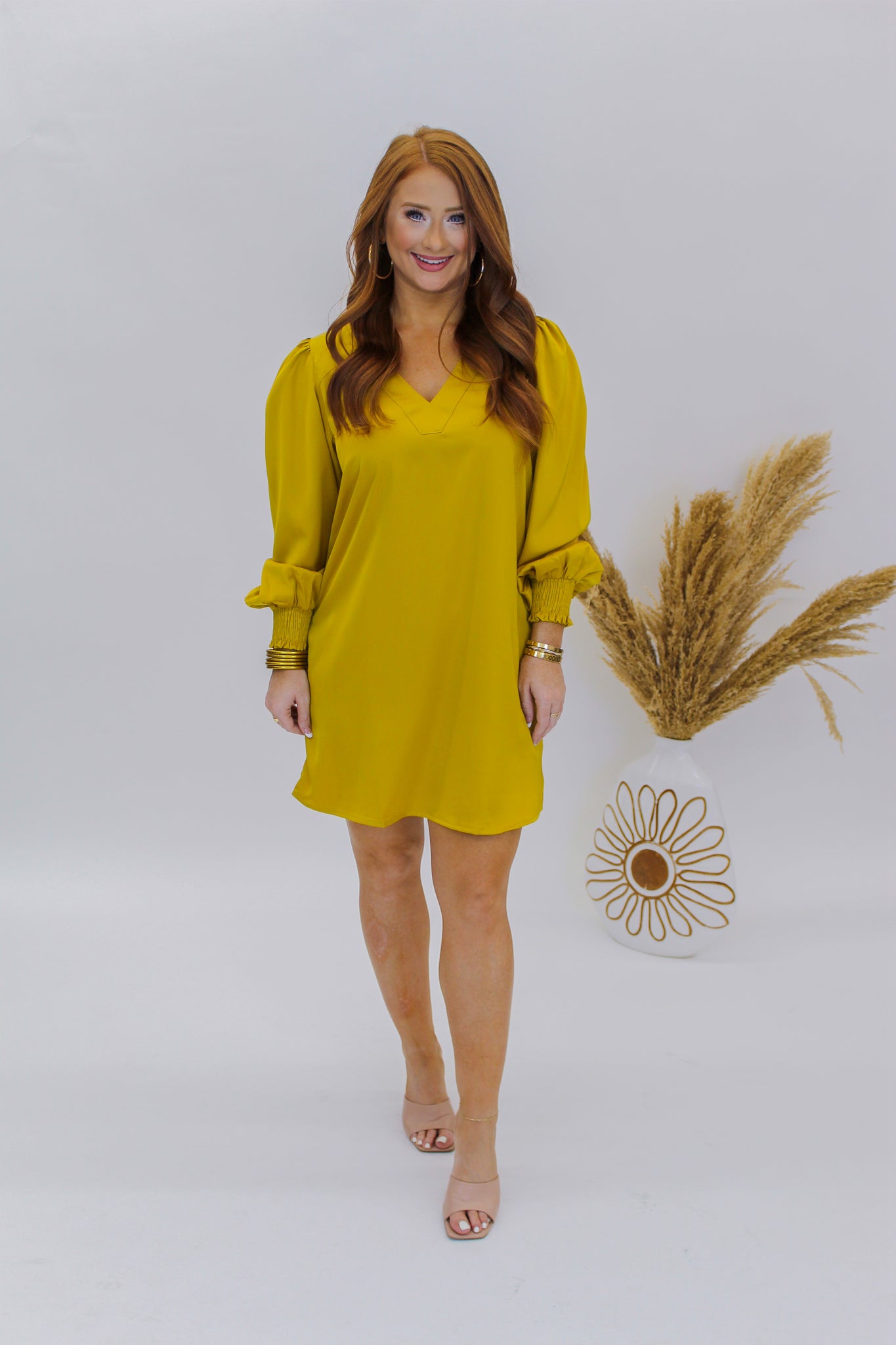 Marley V Neck Long Sleeve Dress- Mustard