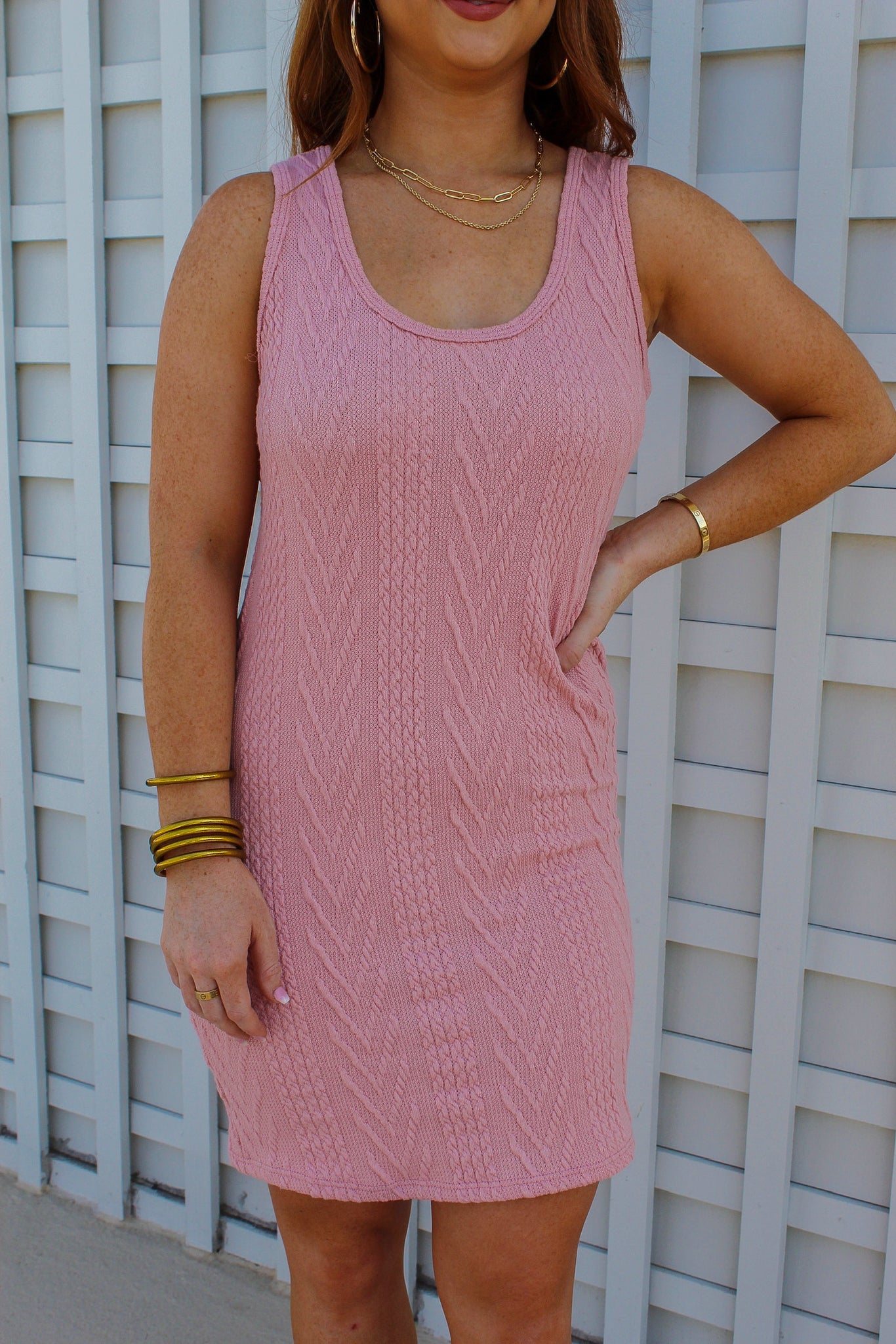Melinda Cable Knit Dress- Blush