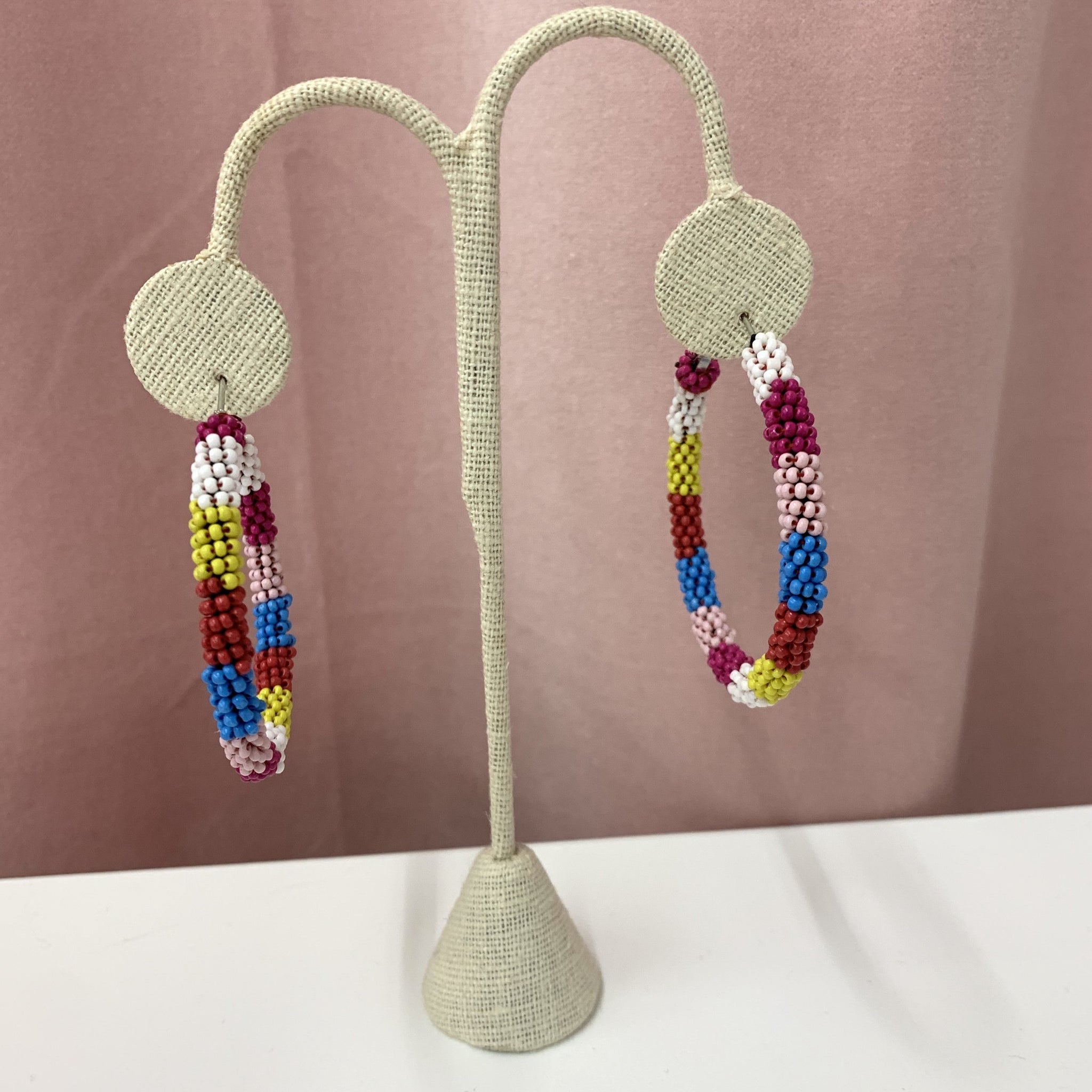 • Load image into Gallery viewer, Multicolor Beaded Hoops