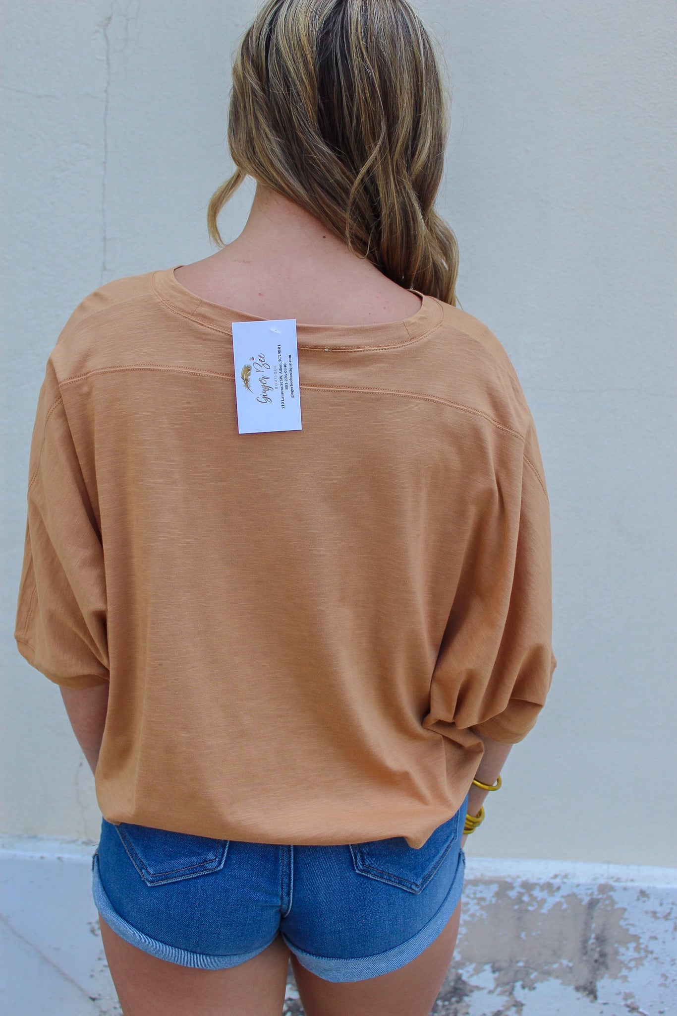 Nikkia Oversized Dolman Short Sleeve Tee- Brown