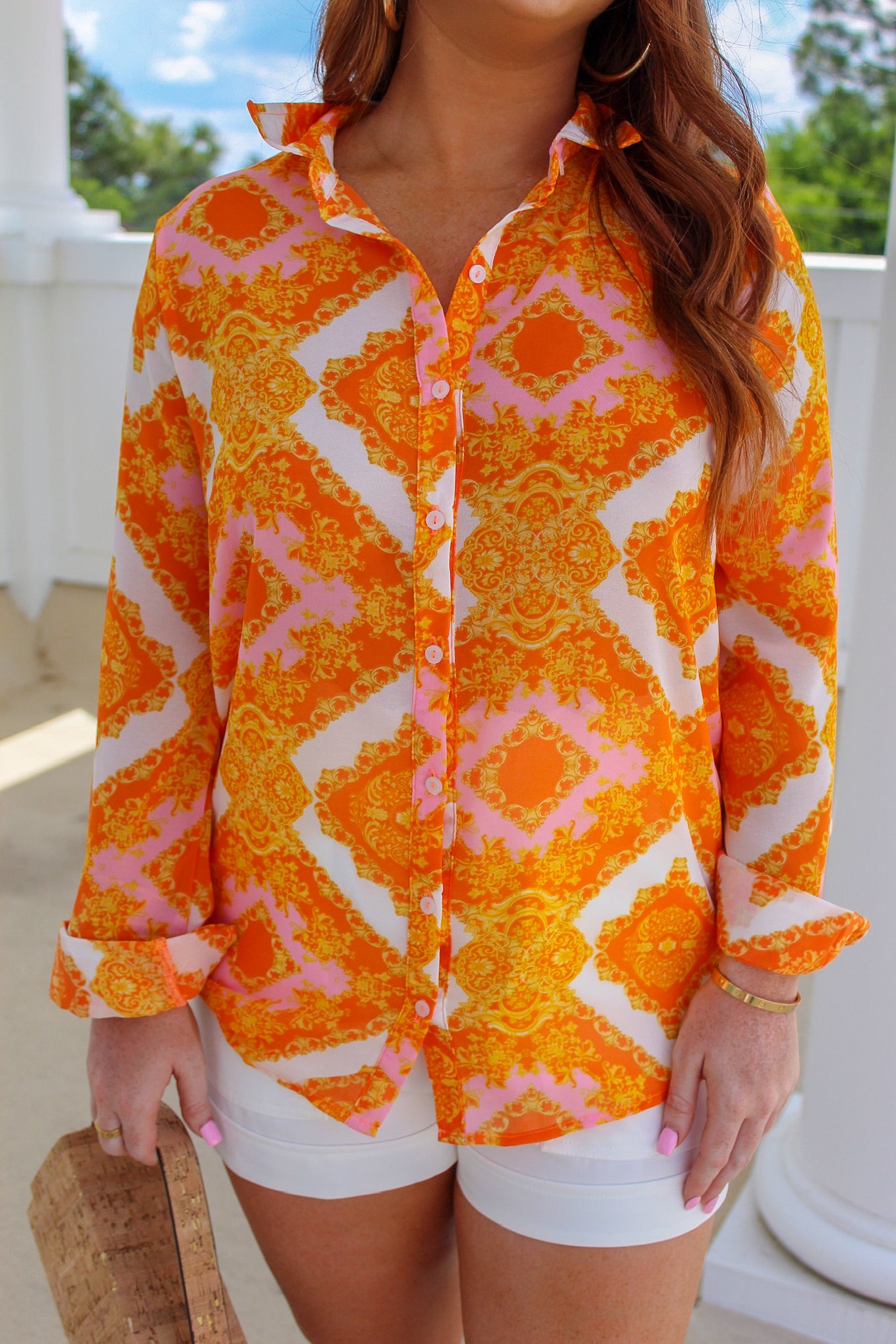 This fun button up is perfect to spice up your work wear! Or with also be so cute paired with denim shorts & sneakers!