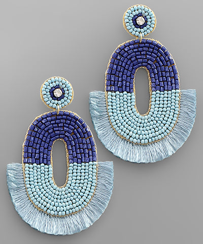• Load image into Gallery viewer, Oval Seed Beads Tassel Earrings