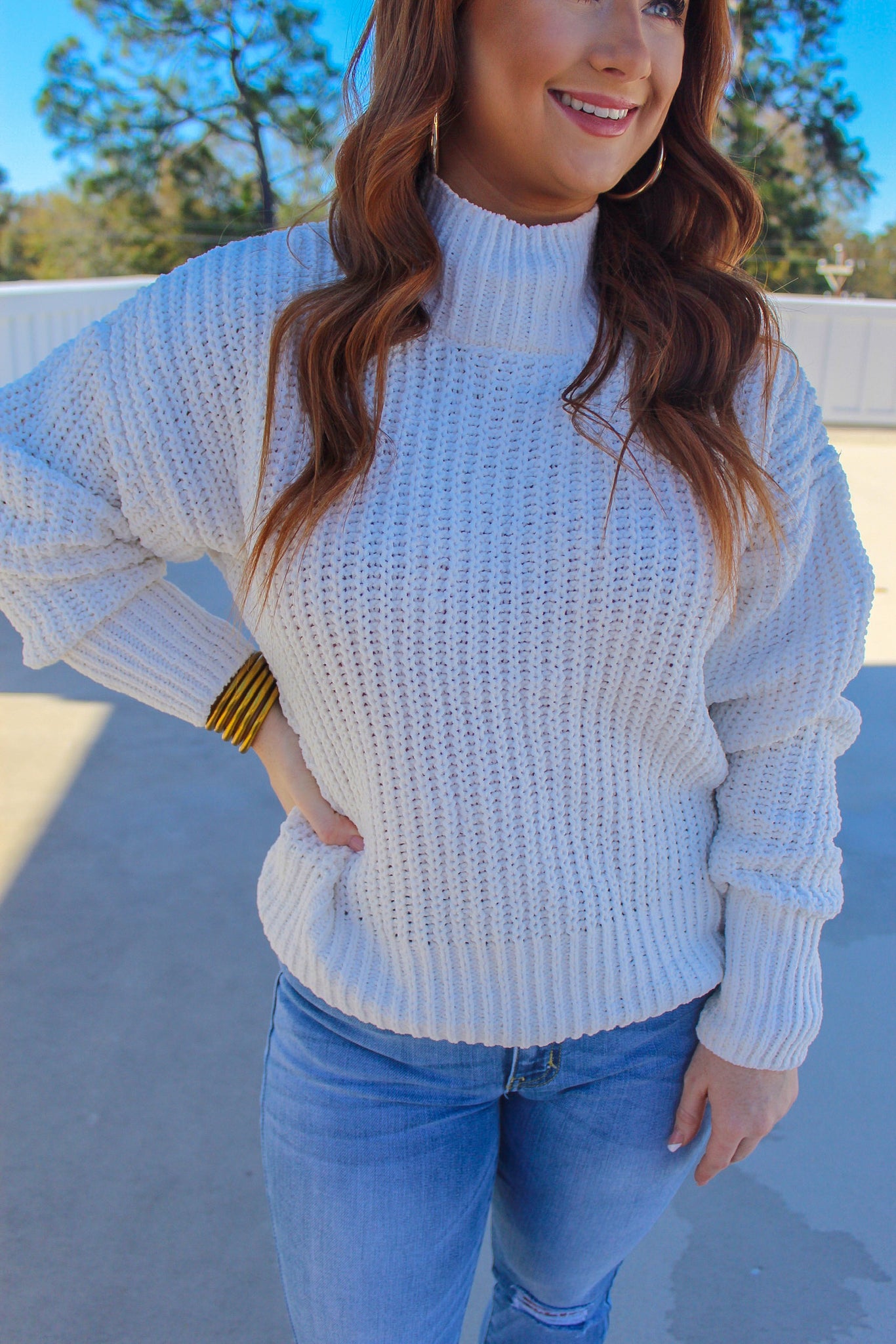 • Load image into Gallery viewer, Patti Mock Neck Knit Sweater- White