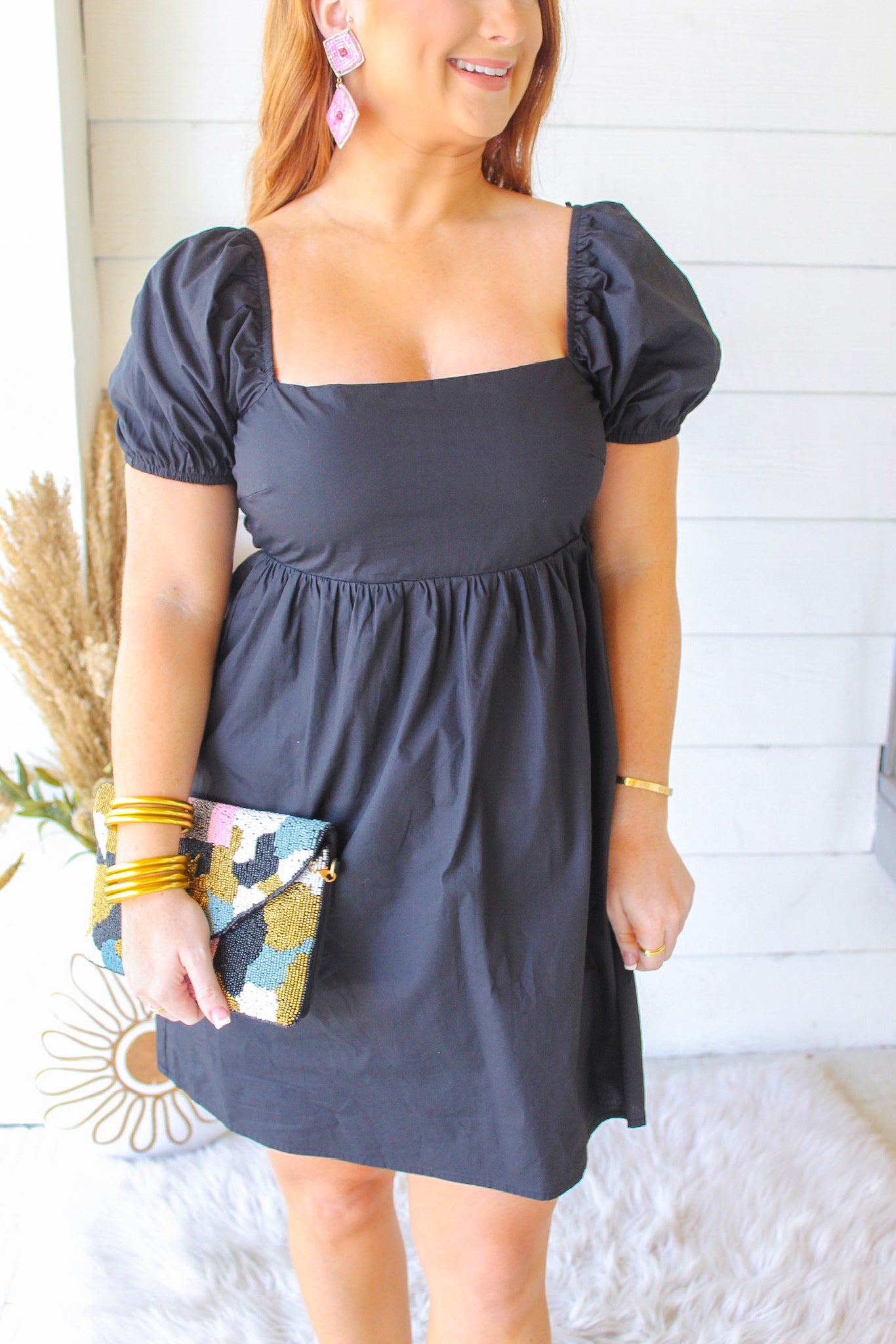 • Load image into Gallery viewer, Penny Short Sleeve Baby Doll Dress- Black
