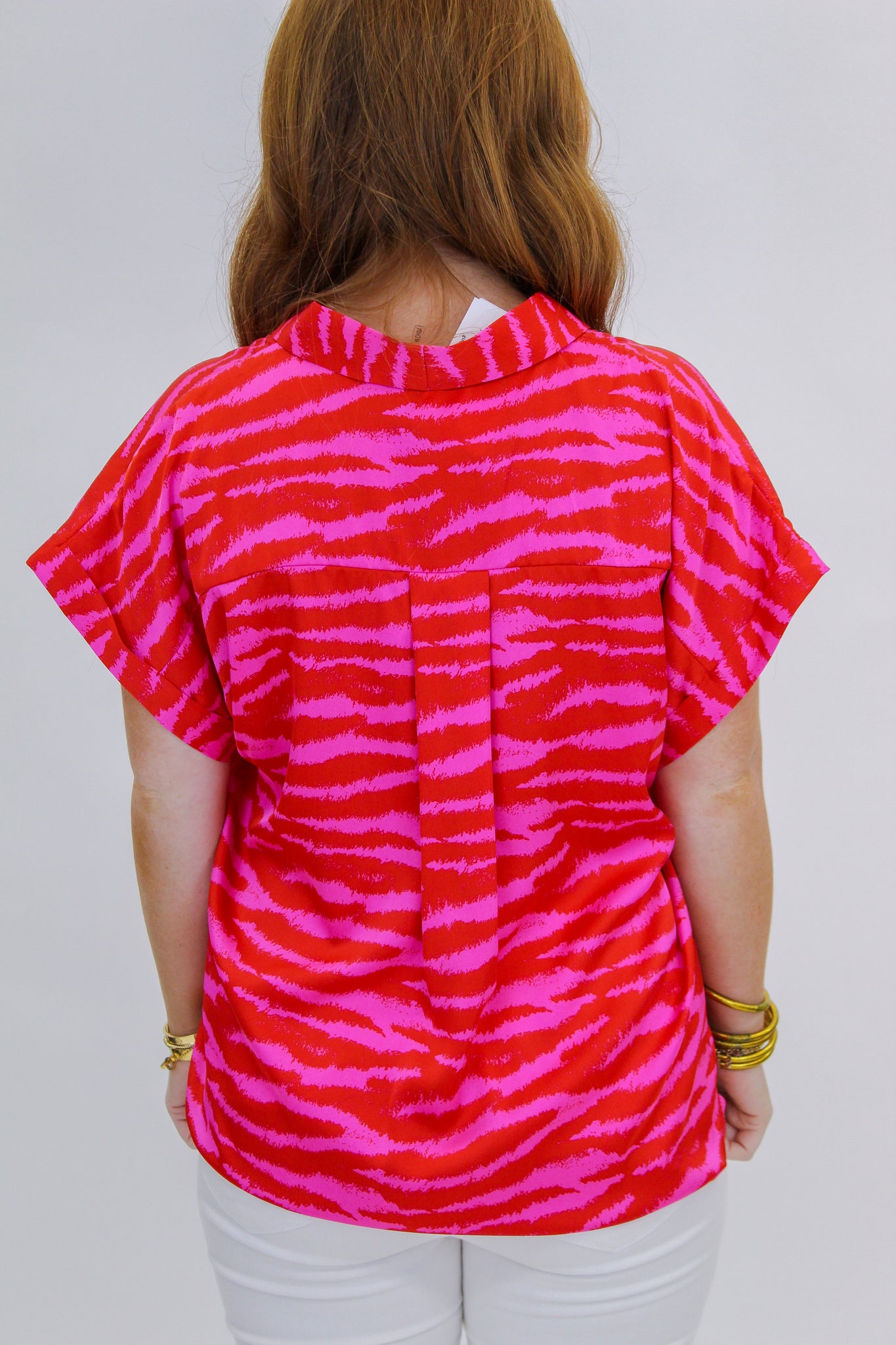 • Load image into Gallery viewer, Poppy Satin Zebra V Neck Top