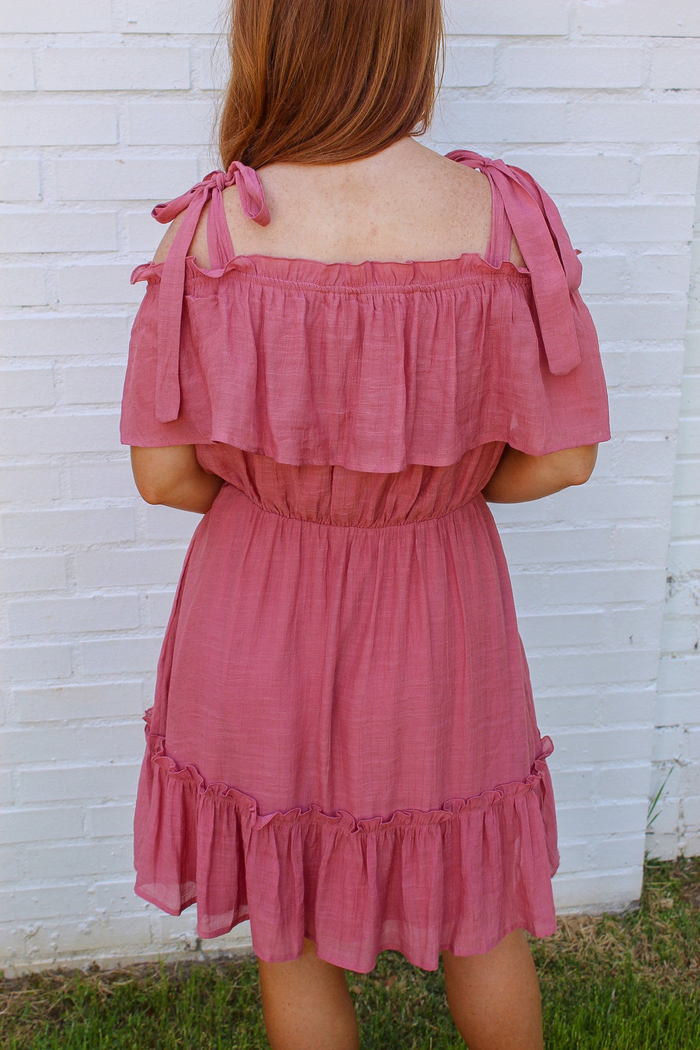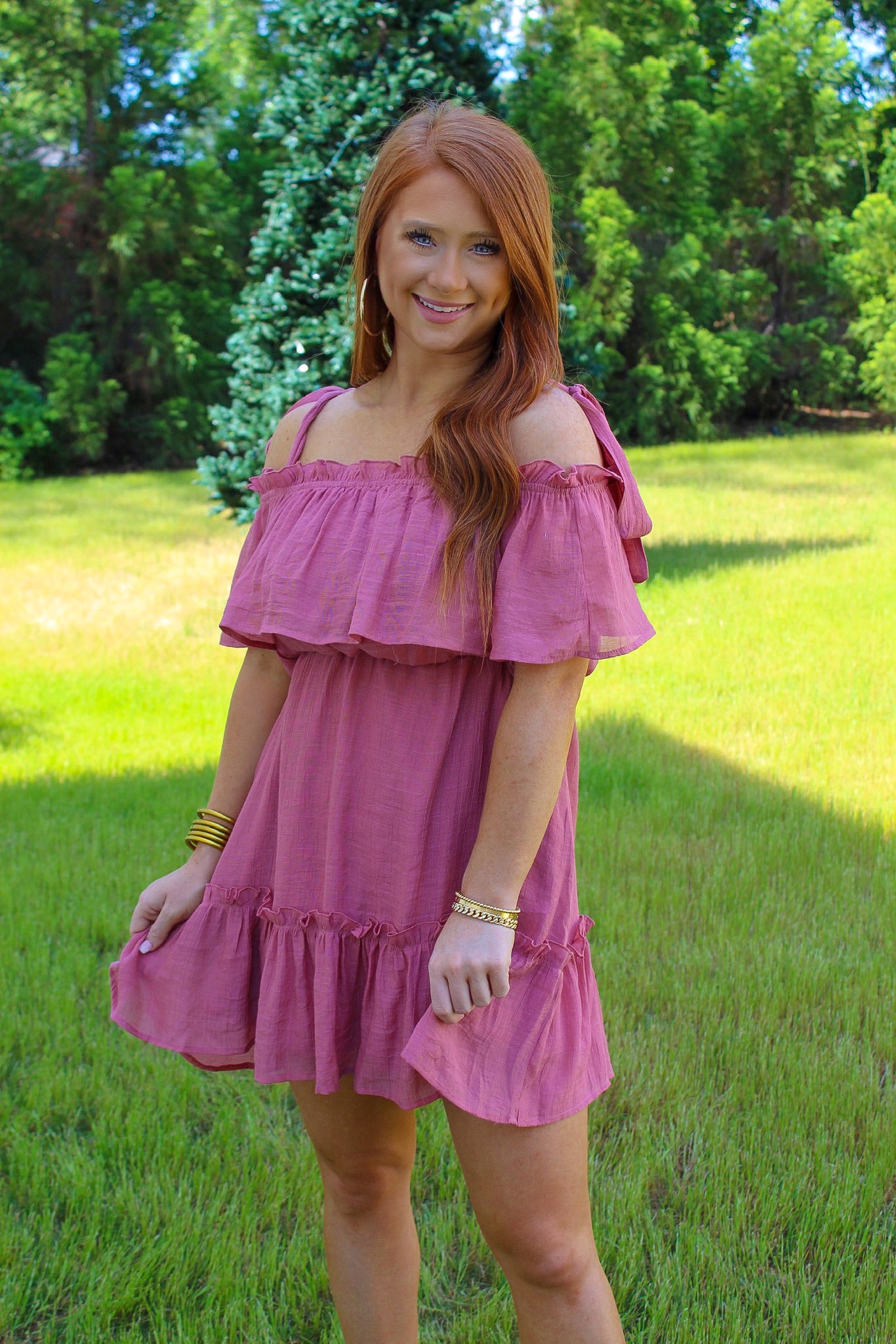 • This rose colored cold shoulder ruffle dress is the perfect lightweight dress that will keep you cool all summer long!