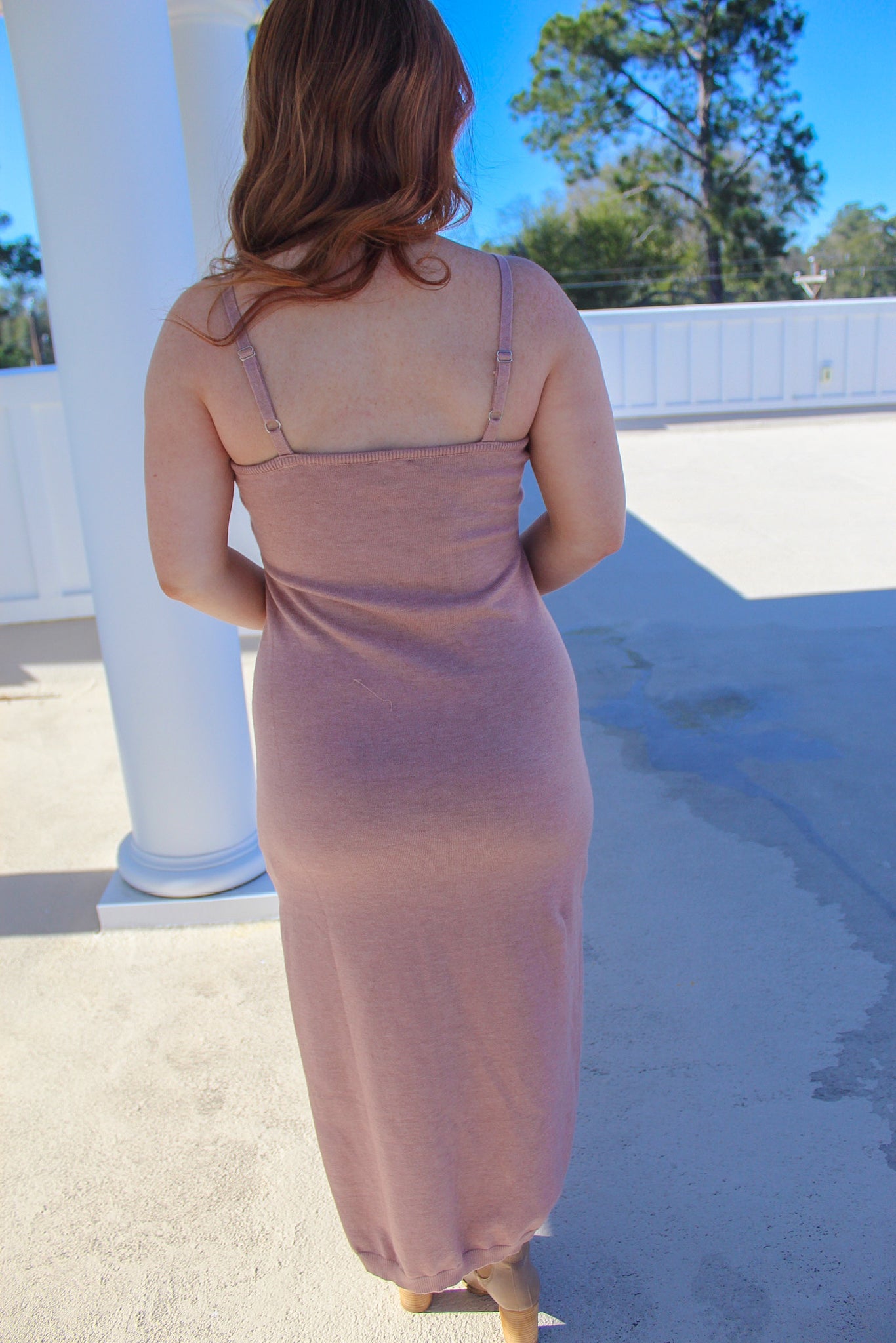 This blush midi dress is perfect to transition into spring with! When its chiller, throw over a jacket!