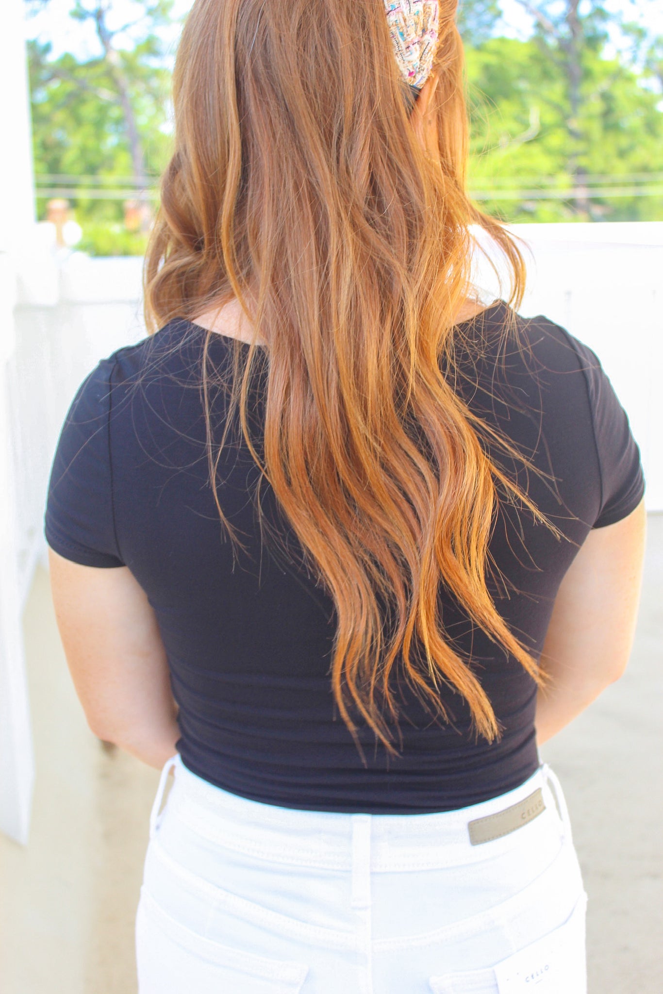 Samie Short Sleeve Tie Detail Bodysuit- Black