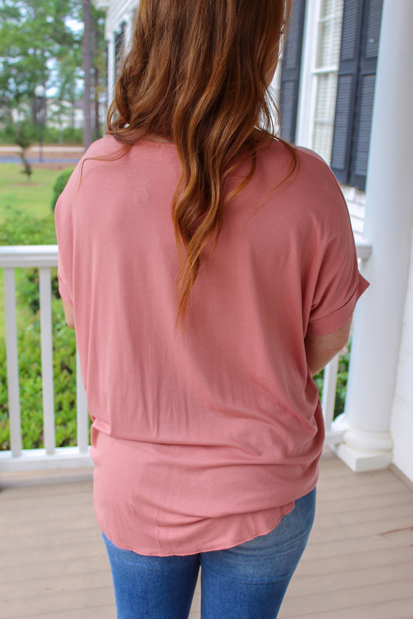 Somer Oversized V Neck Top- Rose