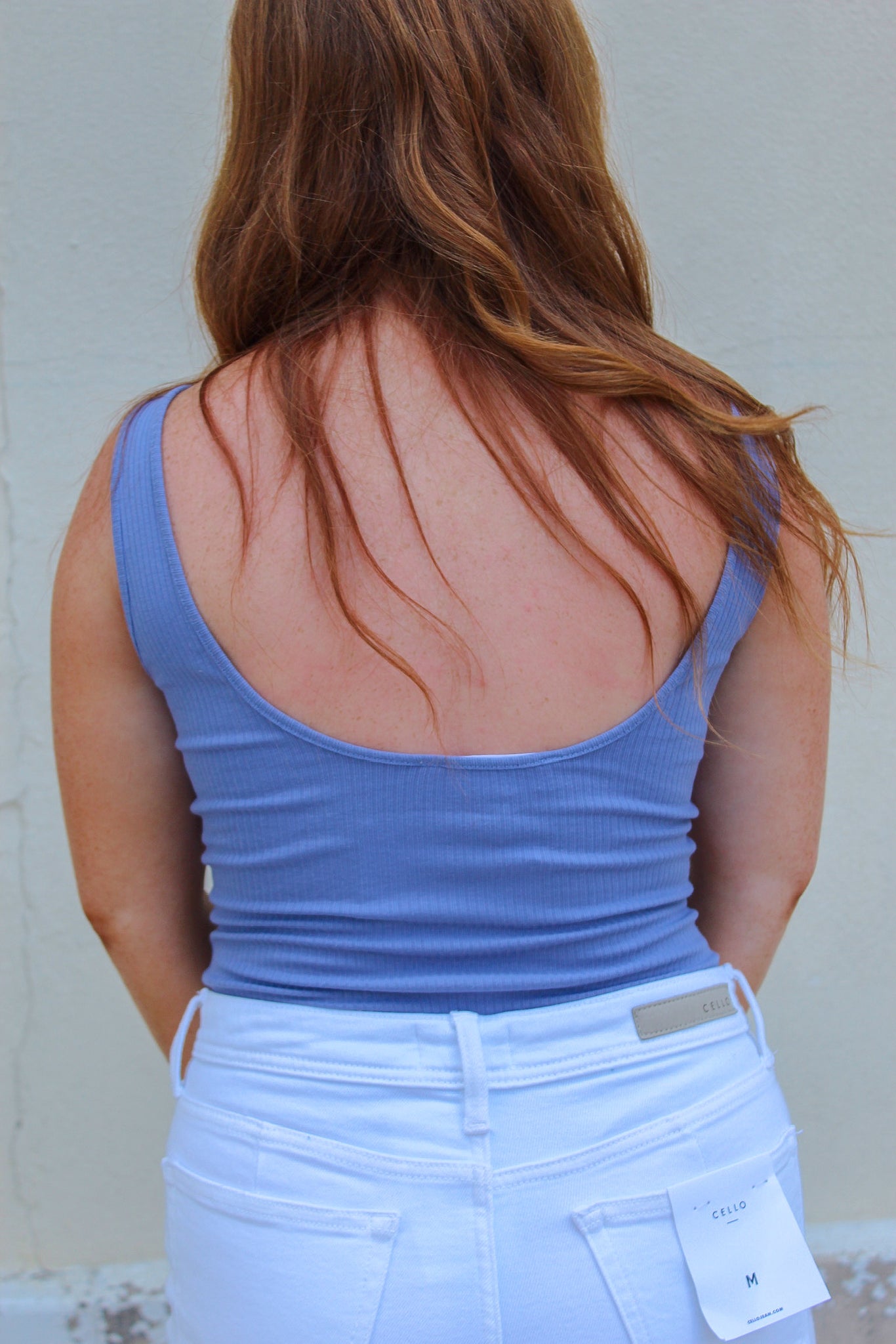 Space Babe Ribbed Bodysuit- Pale Indigo