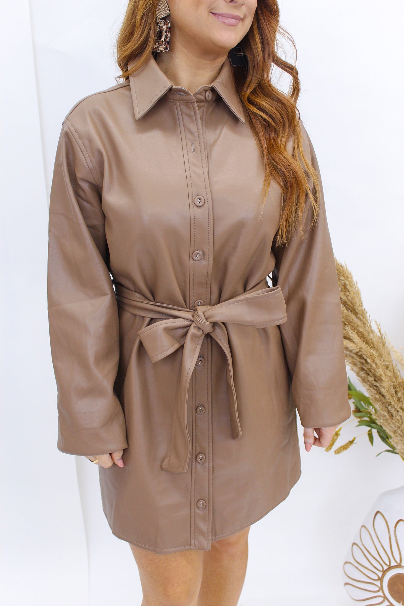 Sweet Fling Leather Button Dress- Mocha