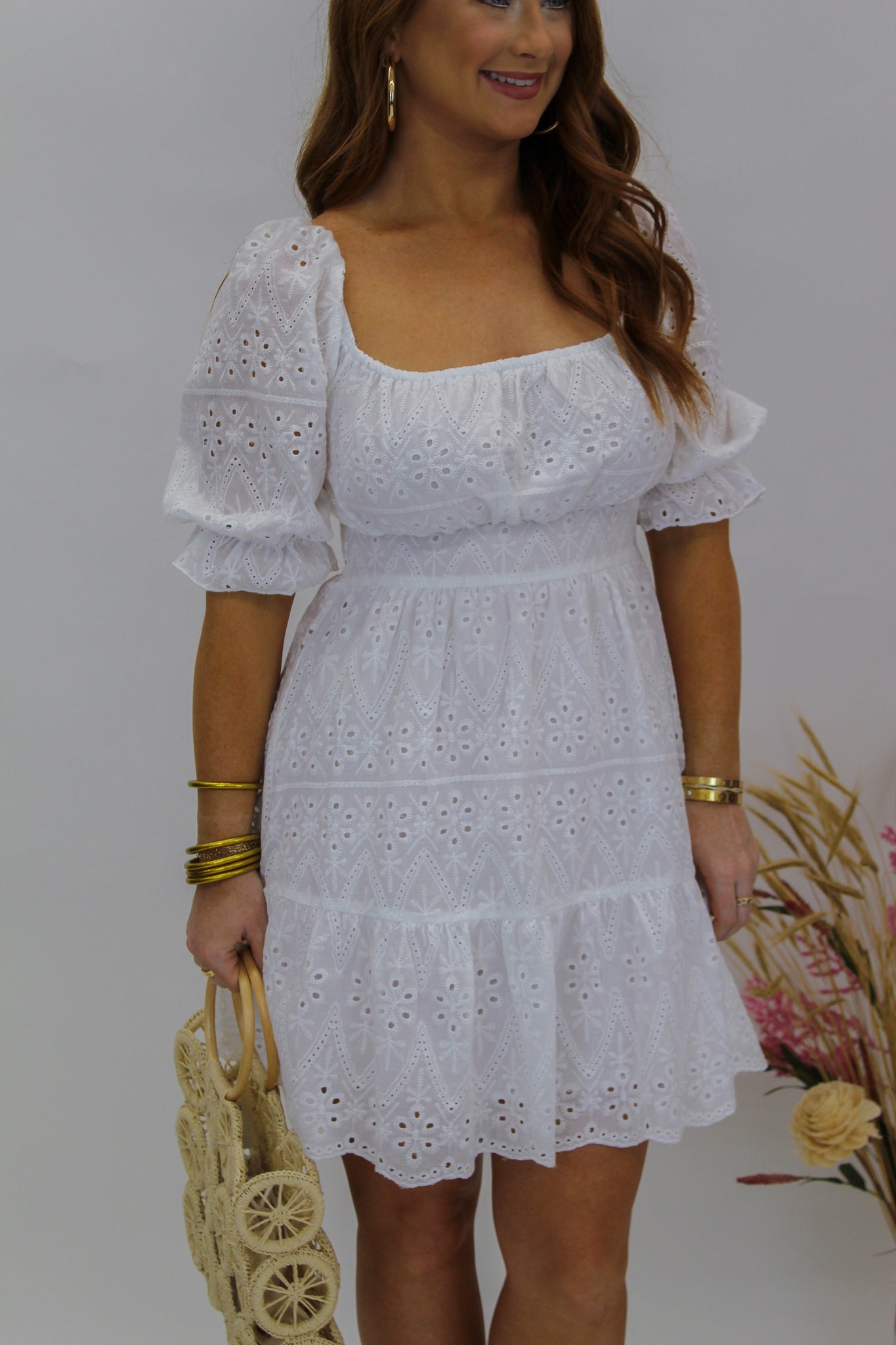 Worth It Eyelet Fabric Dress- White