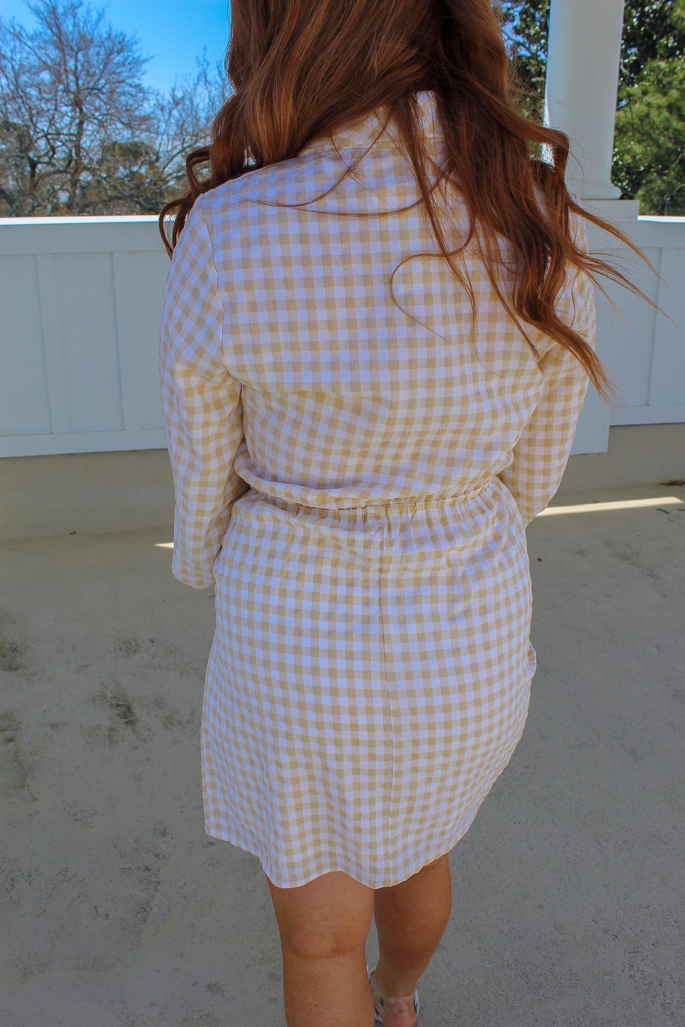 • This yellow checkered wrap dress, is such show stopper! This yellow dress you can pair with wedges or some flares for a effortless look!